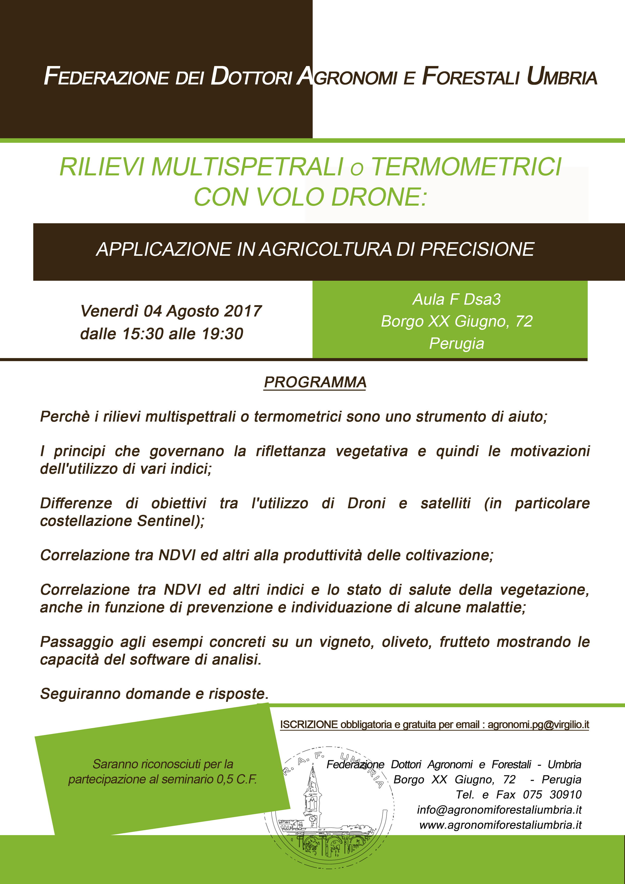è obbligatoria la pre-iscrizione entro e non oltre VENERDI' 28 LUGLIO con invio di adesione alla mail agronomi.pg@virgilio.it