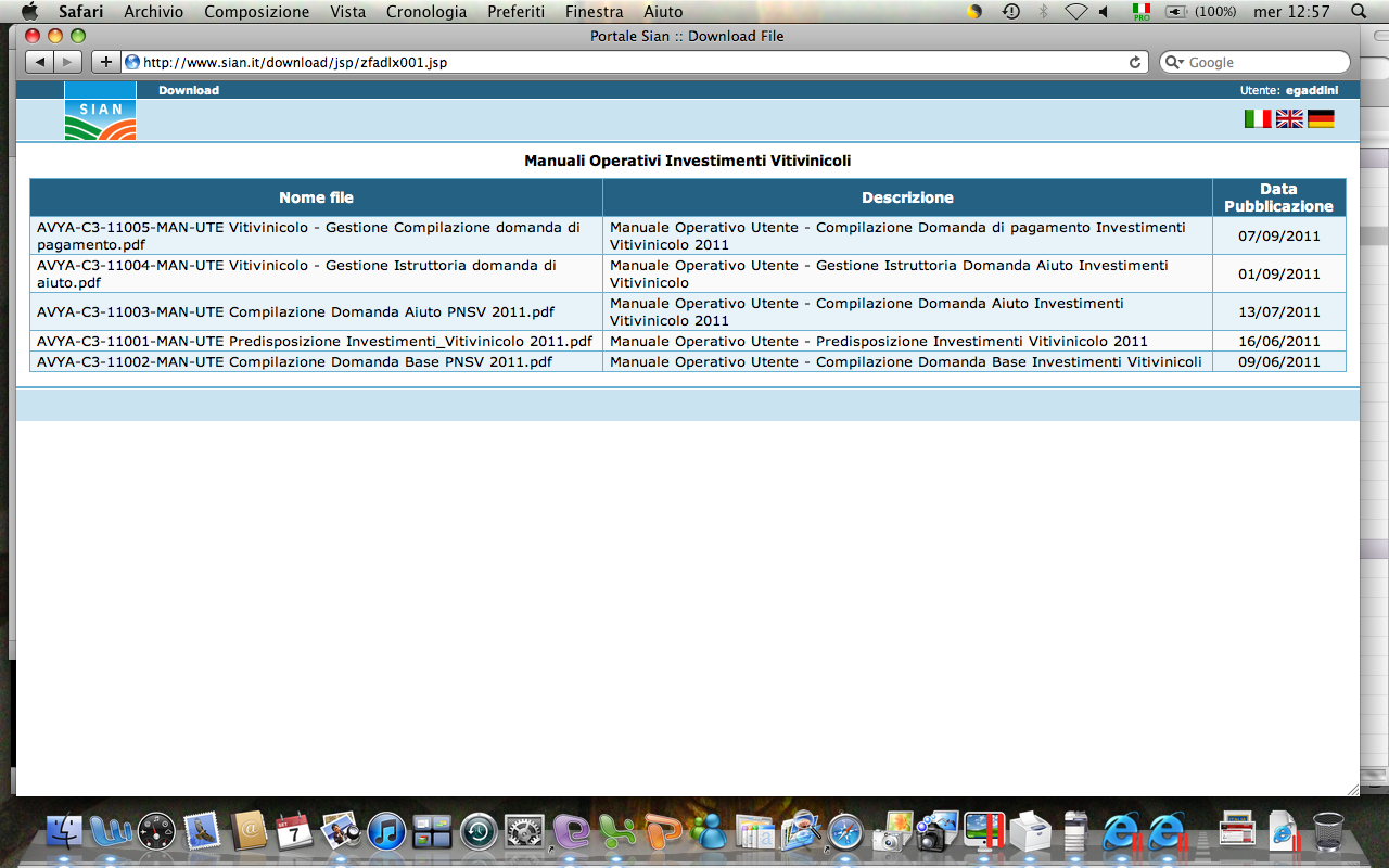 e descrizione: Manuale Operativo Utente – Compilazione Domanda di Pagamento Investimenti Vitivinicolo 2011.