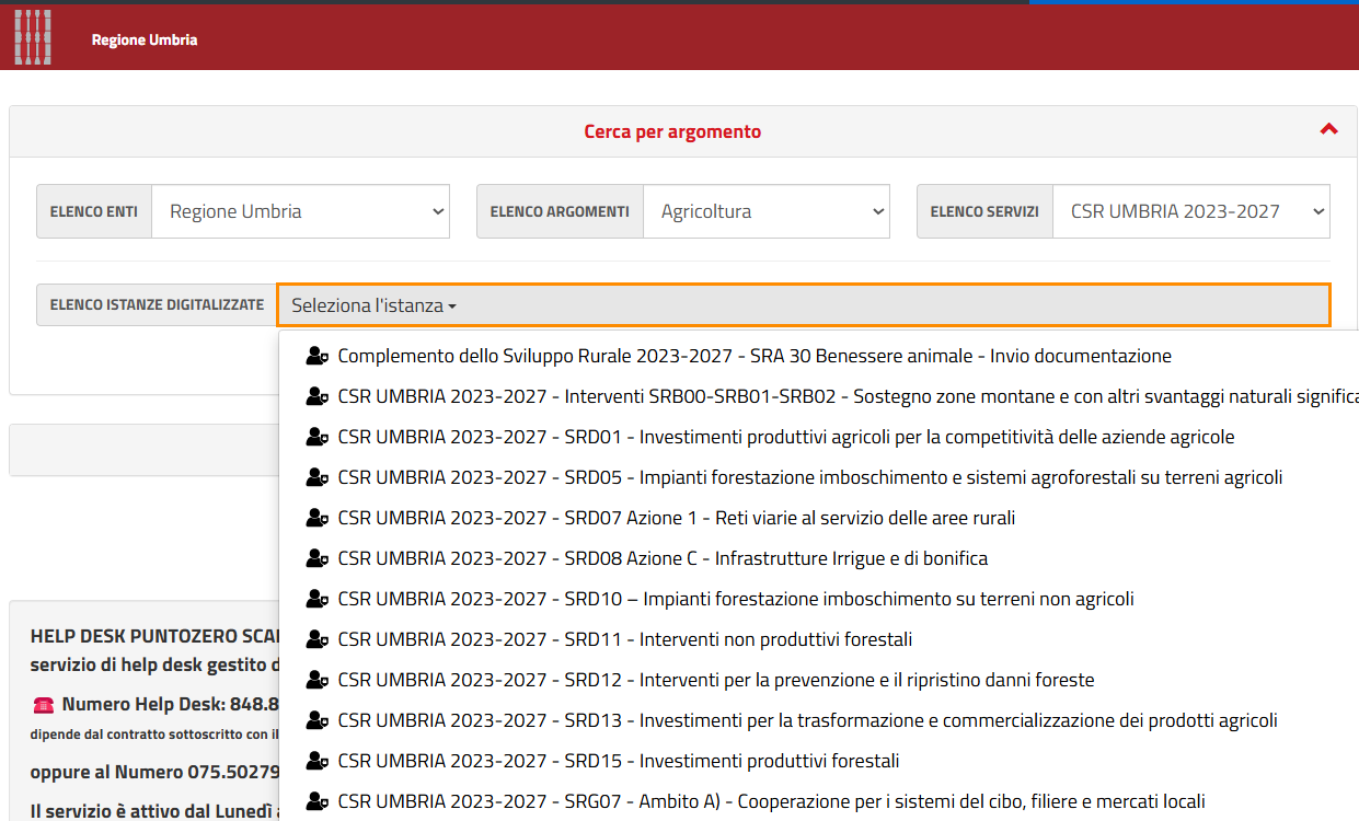 Con la presente si informa che nella piattaforma servizi in rete (link: https://serviziinrete.regione.umbria.it/Servizi/RicercaServizi) sono state attivate le seguenti sezioni: