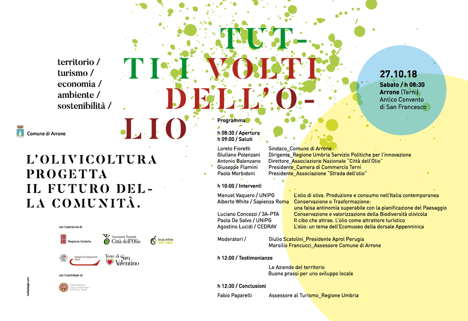 Tutti i volti dell'olio: territorio, turismo, economia, ambiente e sostenibilità. L'Olivicoltura progetta il futuro della comunità".
