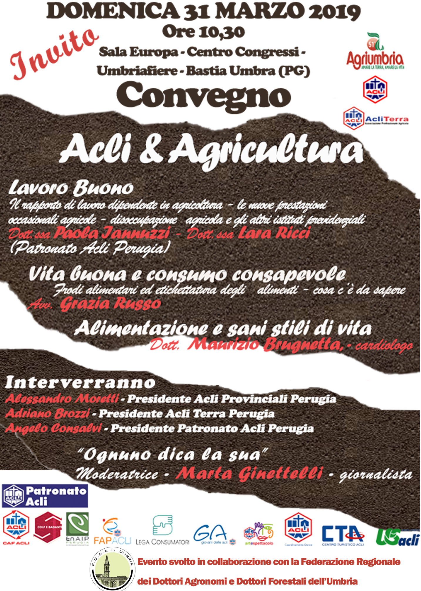 La Federazione Reg.le dei Dottori Agronomi e Dottori Forestali dell'Umbria ha organizzato in collaborazione con il Collegio dei Periti Agrari e dei Periti Agrari Laureati dell'Umbria il seguente Convegno: