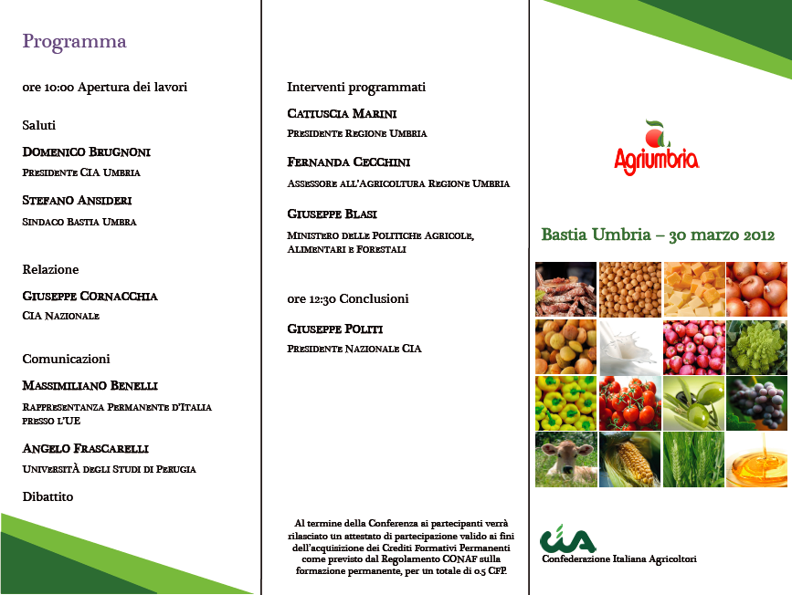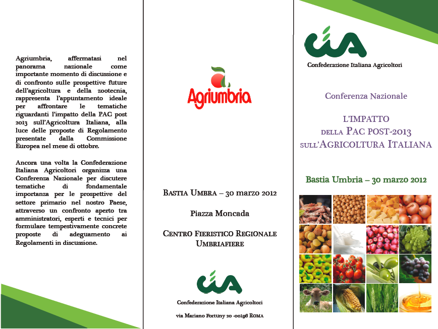 Si comunica lo svolgimento della Conferenza Nazionale su "L'impatto della PAC post 2013 sull'Agricoltura Italiana" che si terrà presso Agriumbria il 30 marzo 2012, di cui si allega programma dettagliato.