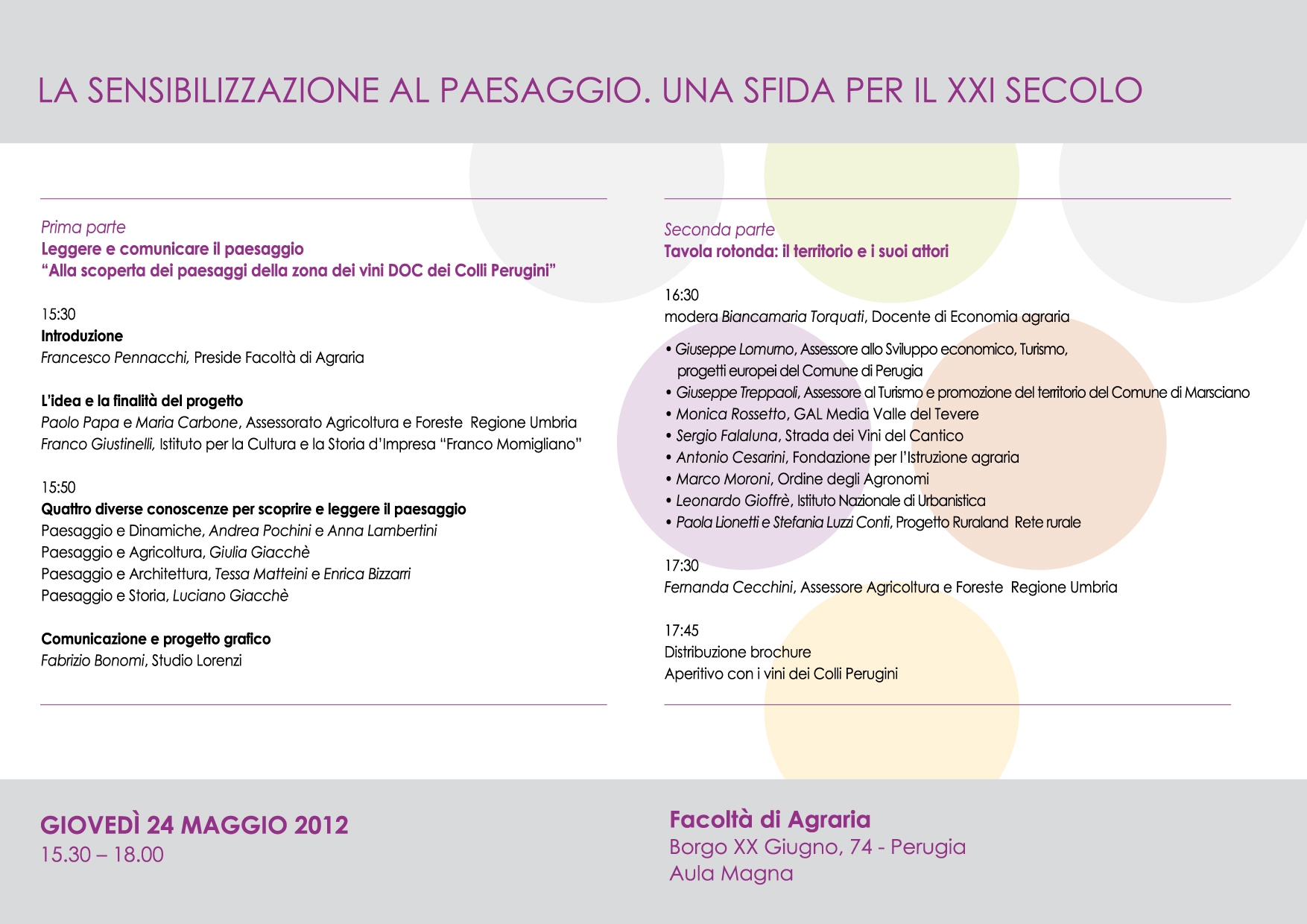 GIOVEDI' 24 MAGGIO 2012 alle ore 15,30 - si svolgerà presso l'Aula Magna della Facoltà di Agraria un seminario avente per oggetto: "La sensibilizzazione al Paesaggio. Una sfida per il XXI secolo".
