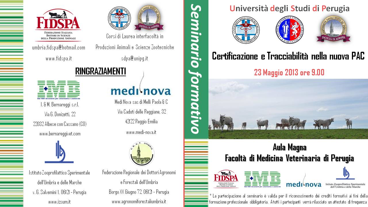 Si trasmette in allegato il programma del seminario "Certificazione e tracciabilità della nuova Pac" che si terrà a Perugia presso la Facolta di Veterinaria il 23 maggio 2013.