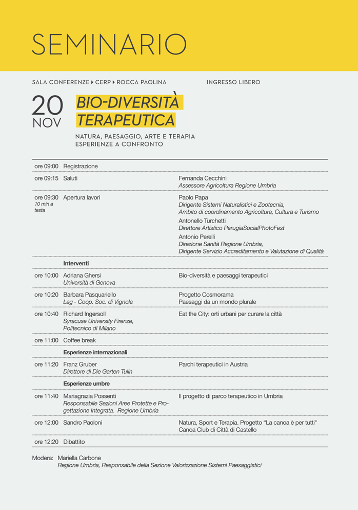 il 20 novembre 2013, alla sala conferenze del CERP – Rocca Paolina dal titolo "Bio-diversità terapeutica".