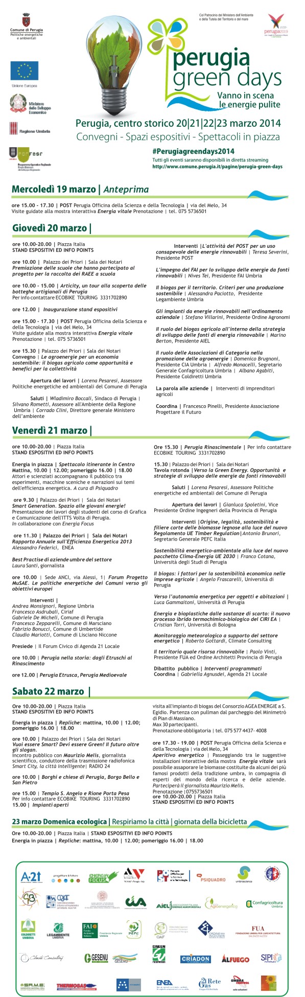 Si trasmette il programma della manifestazione Perugia Green Days che si terrà nel mese di marzo 2014.