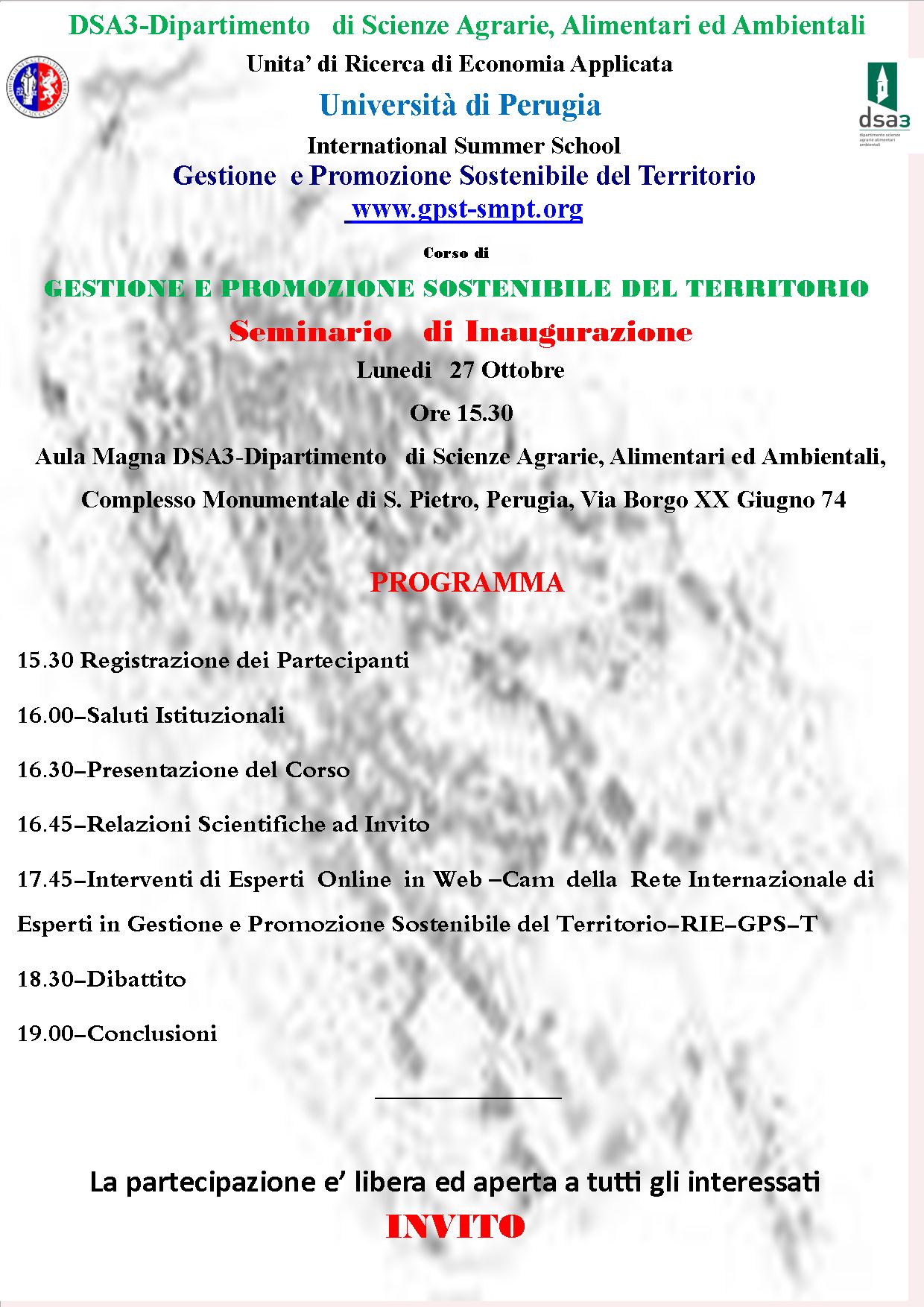 Si trasmtte il programma del seminario " Gestione e promozione sostenibile del territorio" che si terrà il 27.10.2014 a Perugia presso il Dipartmento di Scienze Agrarie, Alimentari e Ambientali.