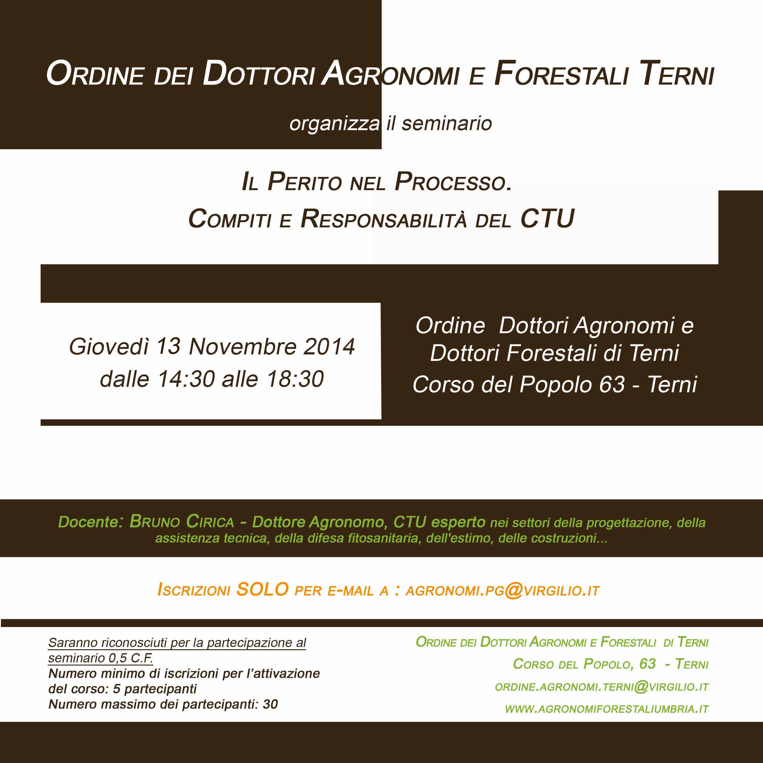 Il seminario IL PERITO NEL PROCESSO. COMPITI E RESPONSABILITA' DEL CTU che è stato rinviato a causa dell'allerta meteo si terrà il 13 novembre 2014 dalle 14:30 alle 18:30 a Terni.