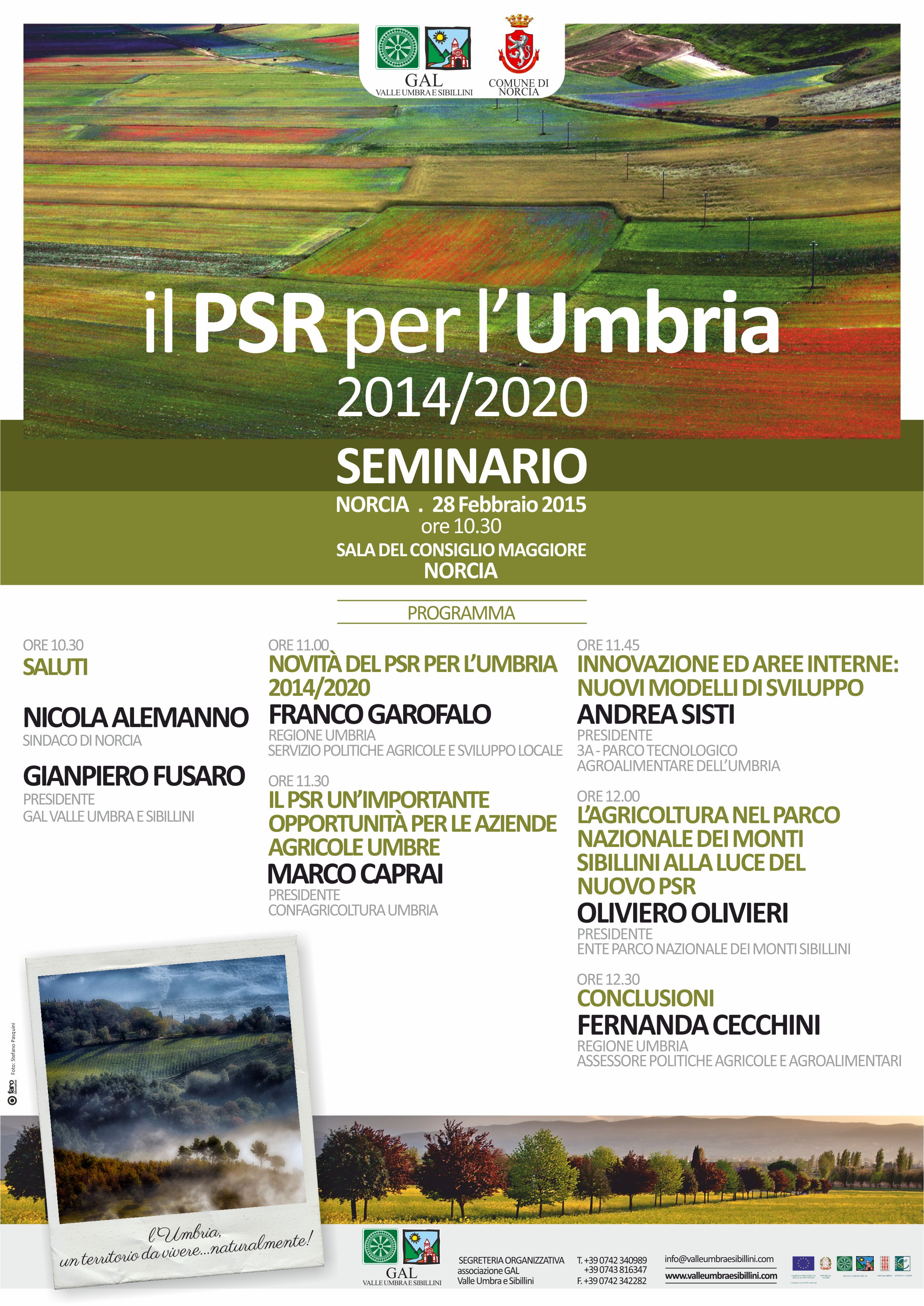 Si trasmette la locandina del seminario "PSR 2014-2020" che si terrà a Norcia il 28.02.2015