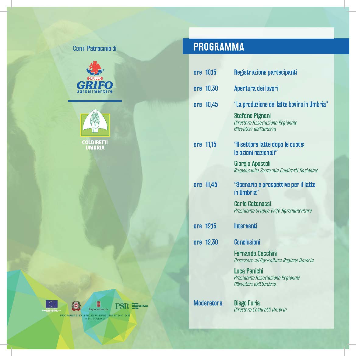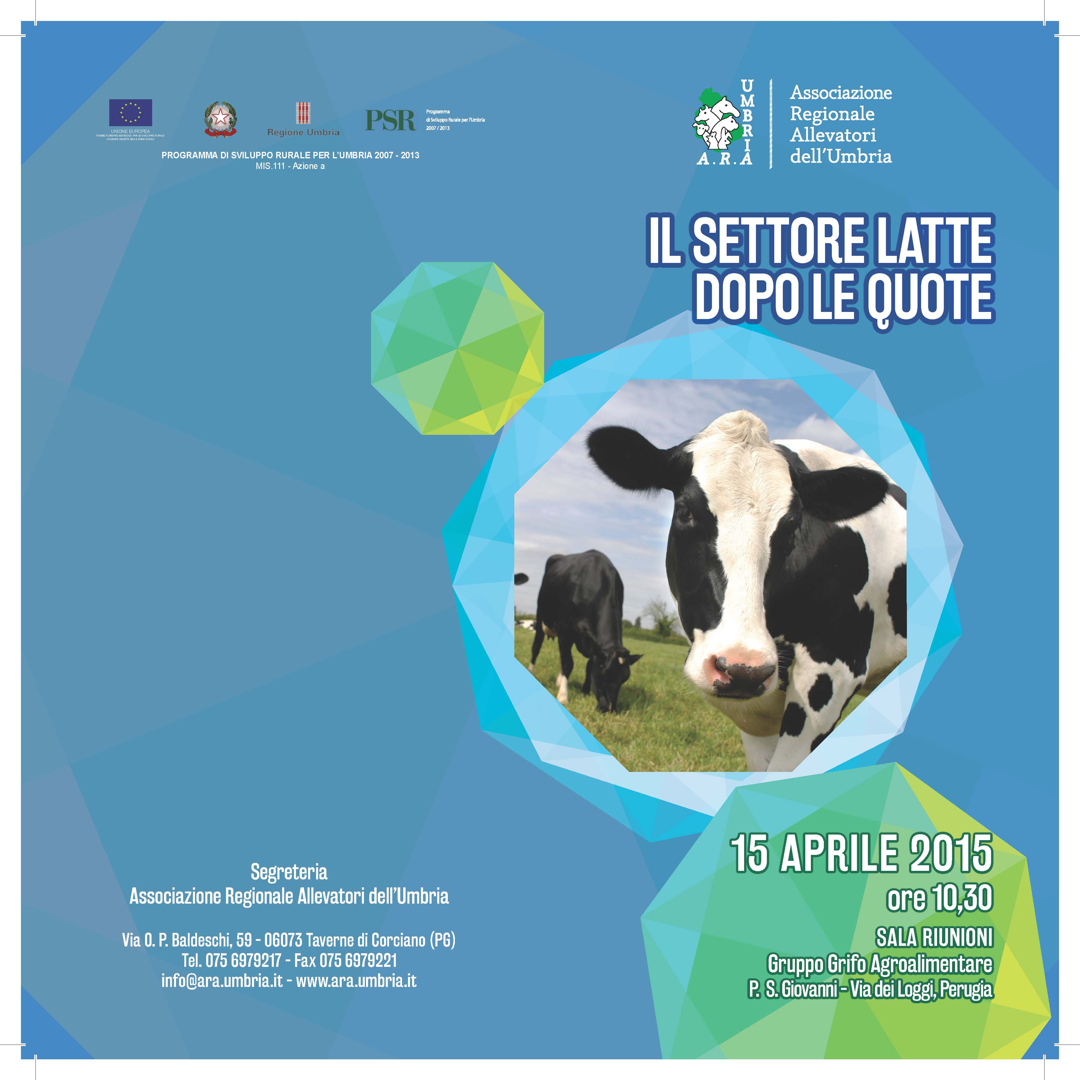 Si trasmette il programma del convegno"Il settore latte dopo le quote" che si terrà il 15 aprile 2015 a Ponte S. Giovanni PG presso la sala riunioni del Gruppo Grifo Agroalimentare per fare il punto sulla situazione attuale e sulle prospettive per gli allevamenti bovini da latte alla luce della fine delle quote latte.