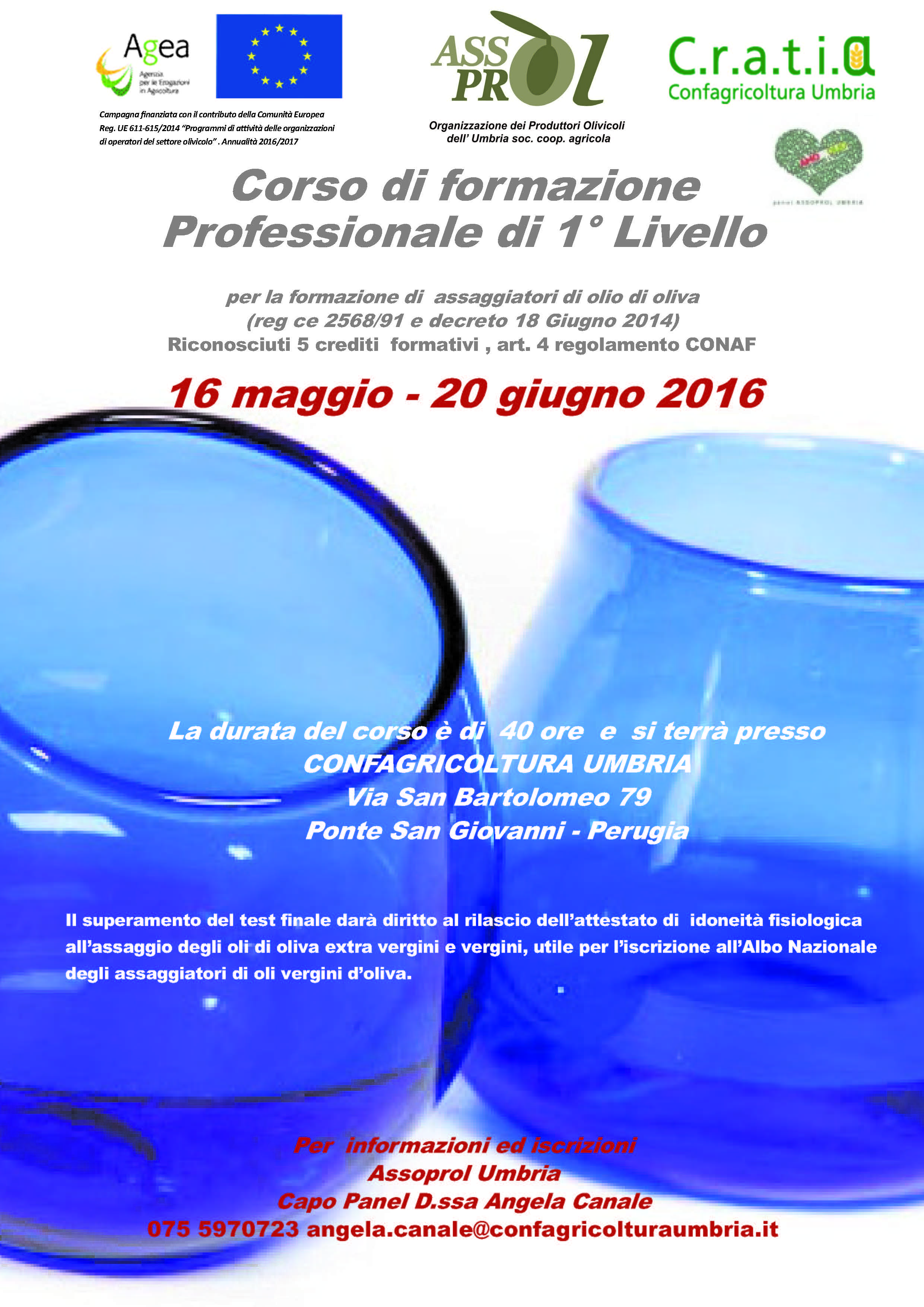 Si invia in allegato la locandina ed il calendario del Corso professionale di 1° livello per la formazione di assaggiatori di olio di oliva con preghiera di divulgarlo agli iscritti all’ordine.
