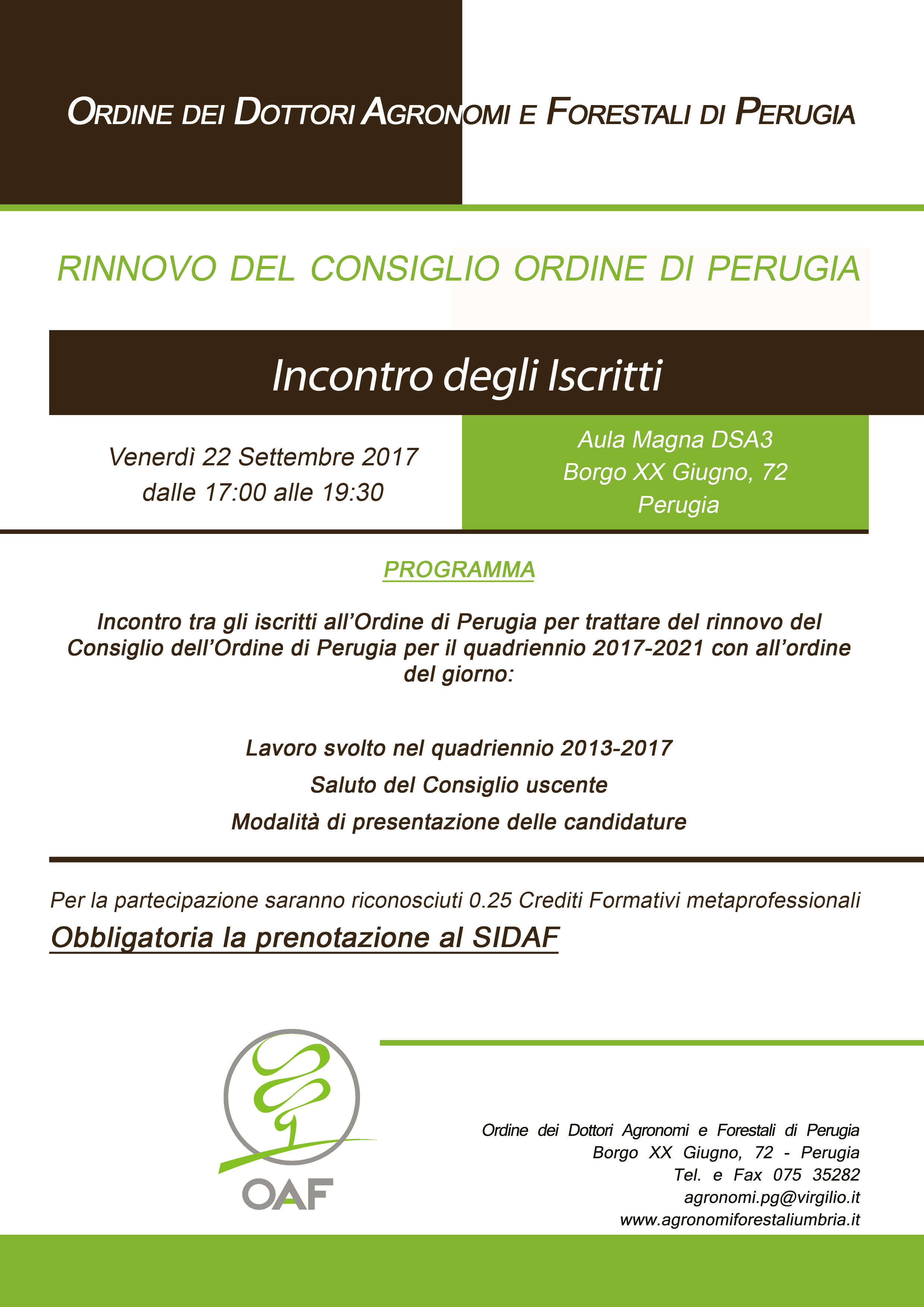 Su disposizione del Presidente si trasmette il programma dell'incontro degli Iscritti con il saluto del Consiglio uscente e la presentazione delle modalità di candidatura per il rinnovo del Consiglio dell'Ordine 2017- 2021, che si terrà in Aula Magna Venerdì 22 Settembre alle ore 17,00.