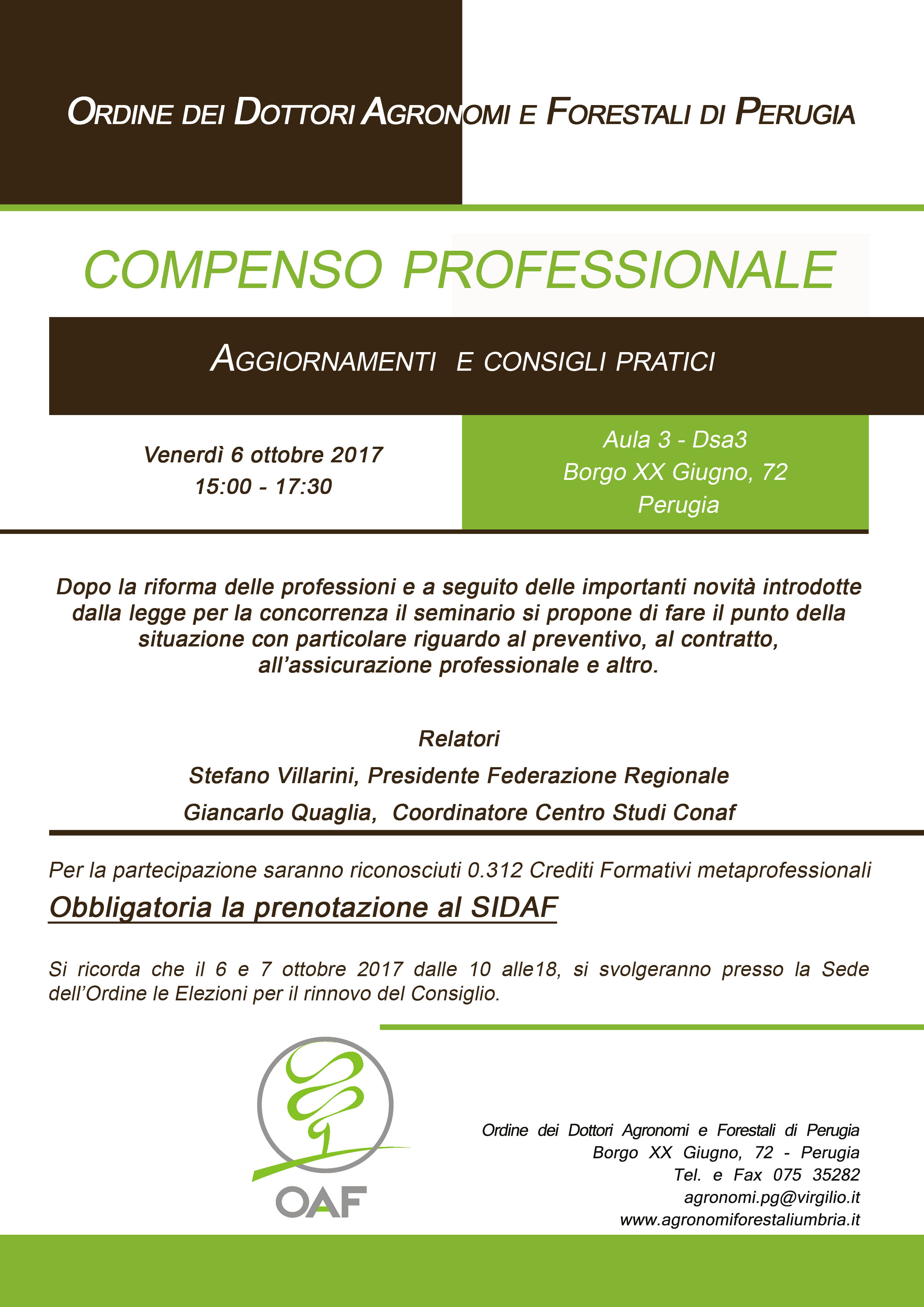 Si trasmette il programma del seminario su Compenso professionale che si svolgerà in Aula 3 del Dipartimento di Scienze Agrarie, Alimentari ed Ambientali il giorno Venerdì 6 Ottobre 2017 ore 15,00.